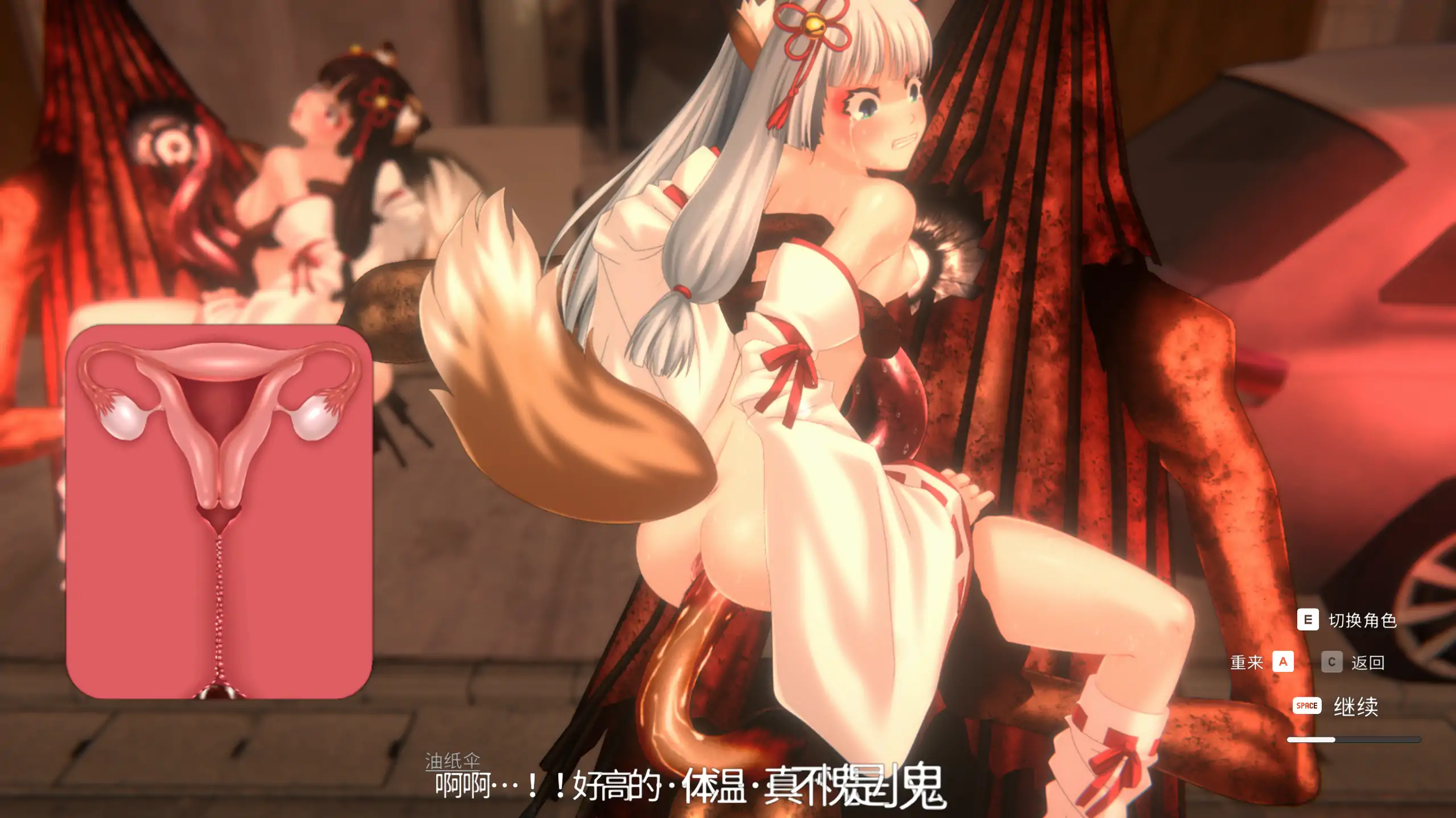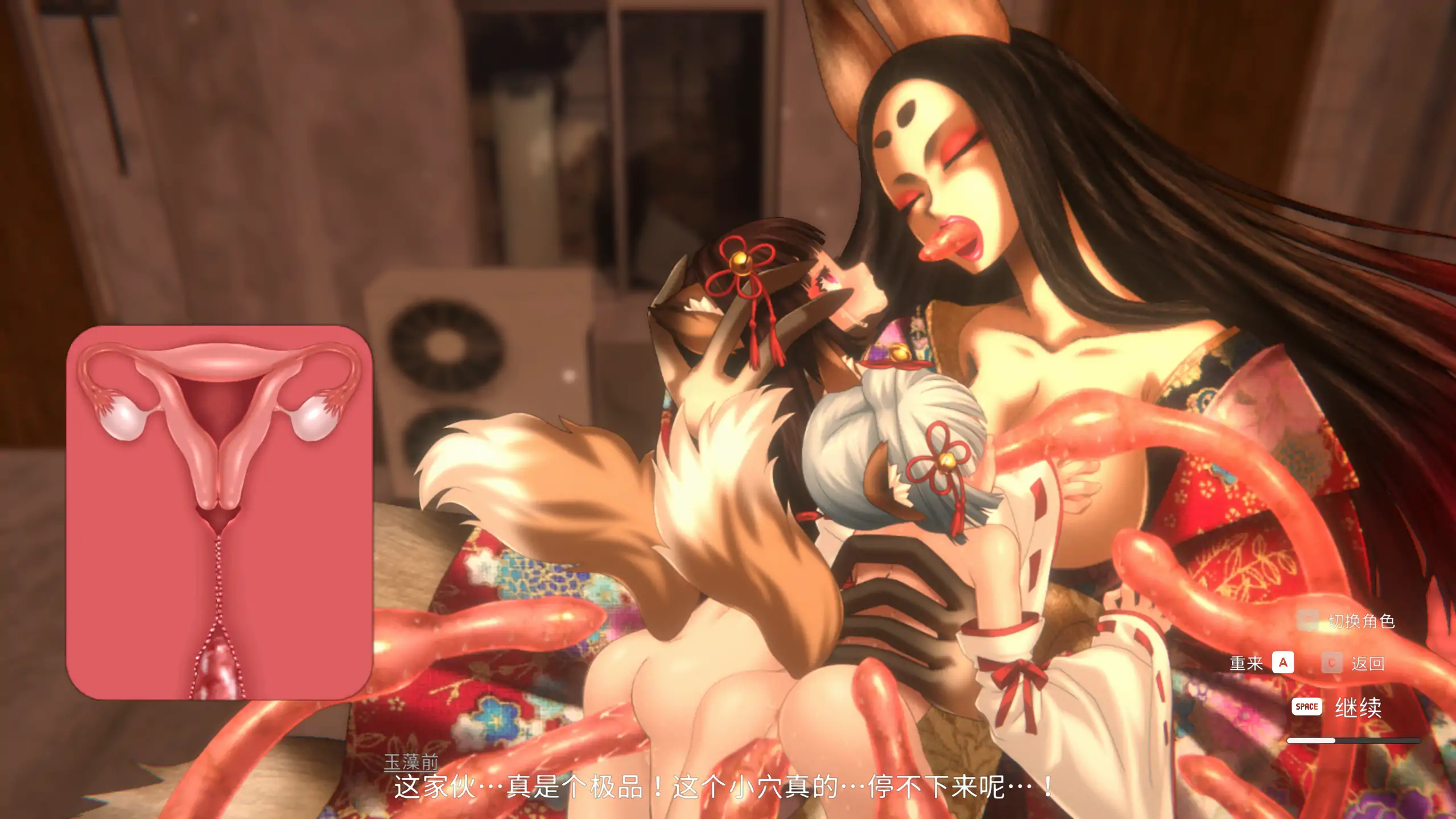 如果全灭就会游戏失败,进入用流畅的Live2D动画描绘的被妖怪带回巢穴强○的场景!